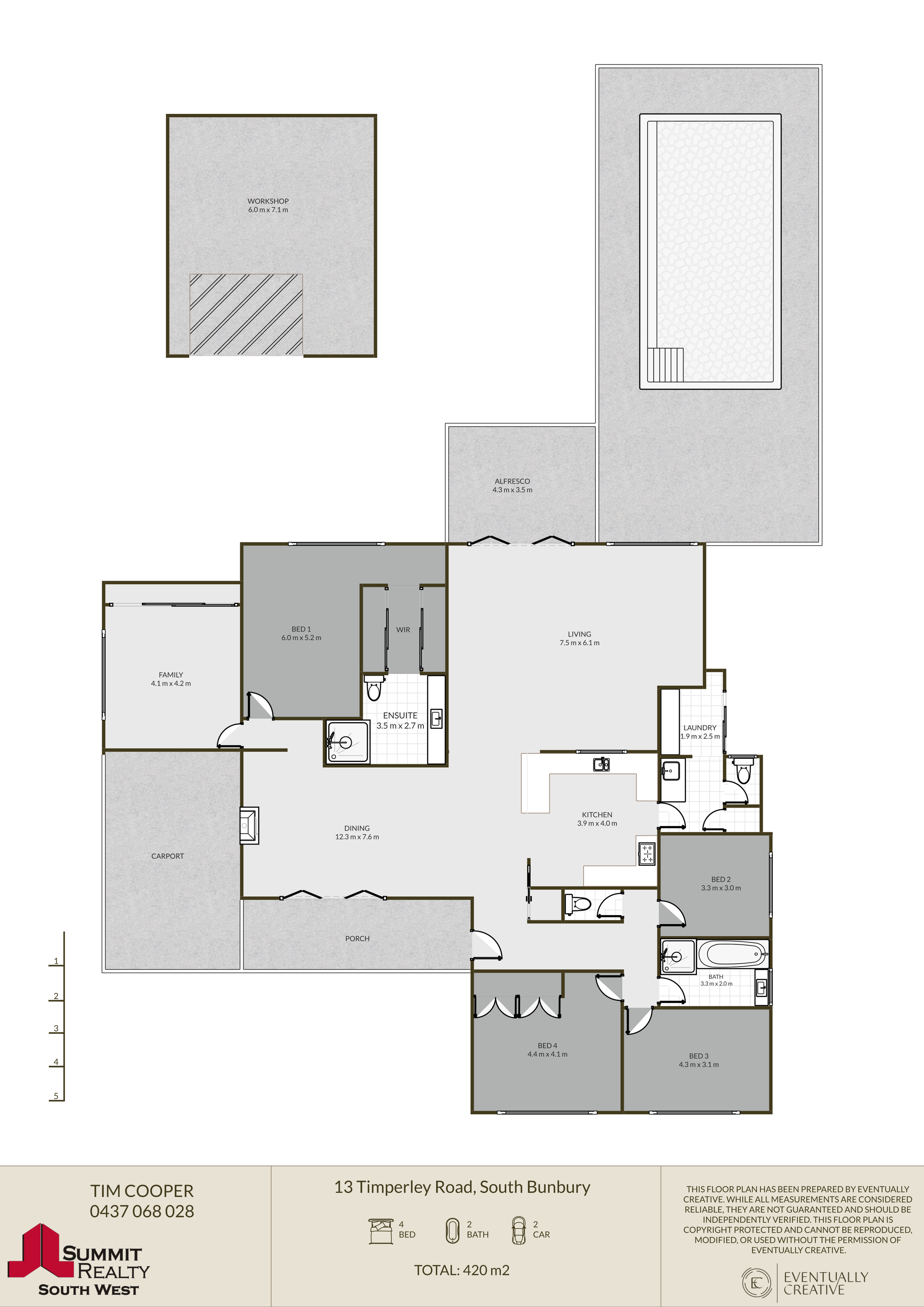 This information is presented for the purpose of promoting and marketing this property. Whilst we have taken every reasonable measure to ensure the accuracy of the information provided, we do not provide any warranty or guarantee concerning its correctness. Summit Realty South West disclaims any responsibility for inaccuracies, errors, or omissions that may occur. We strongly advise all interested parties to conduct their own independent inquiries and verifications to confirm the accuracy of the information presented herein, prior to making an offer on the property.
